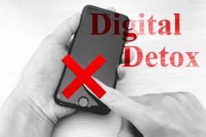 - 「スマホを置き、土の匂いに包まれて空を見上げる静かな時間」